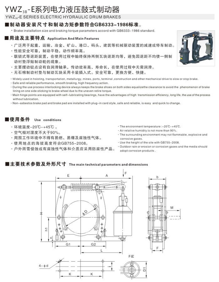 YWZ3B-E系列電力液壓鼓式制動(dòng)器