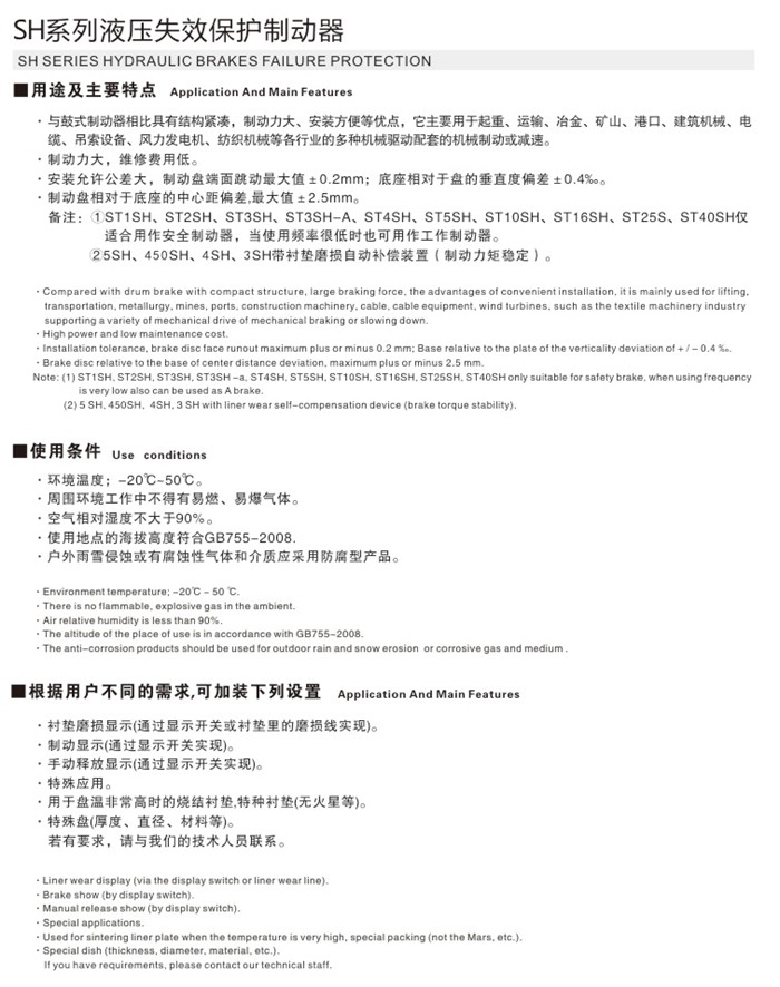 SH系列液壓失效保護(hù)制動器