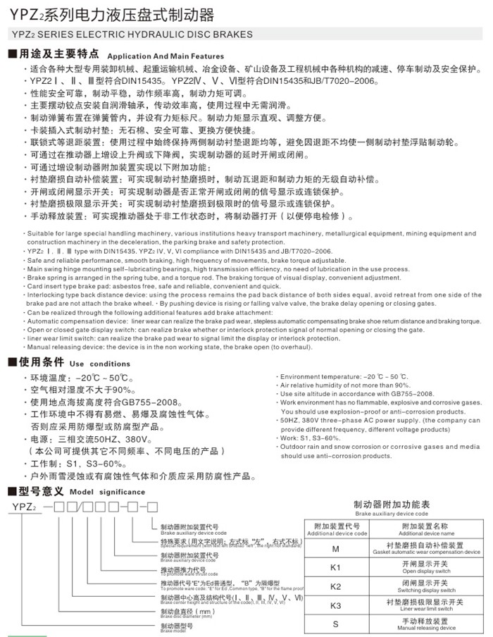 YPZ2系列電力液壓臂盤制動(dòng)器